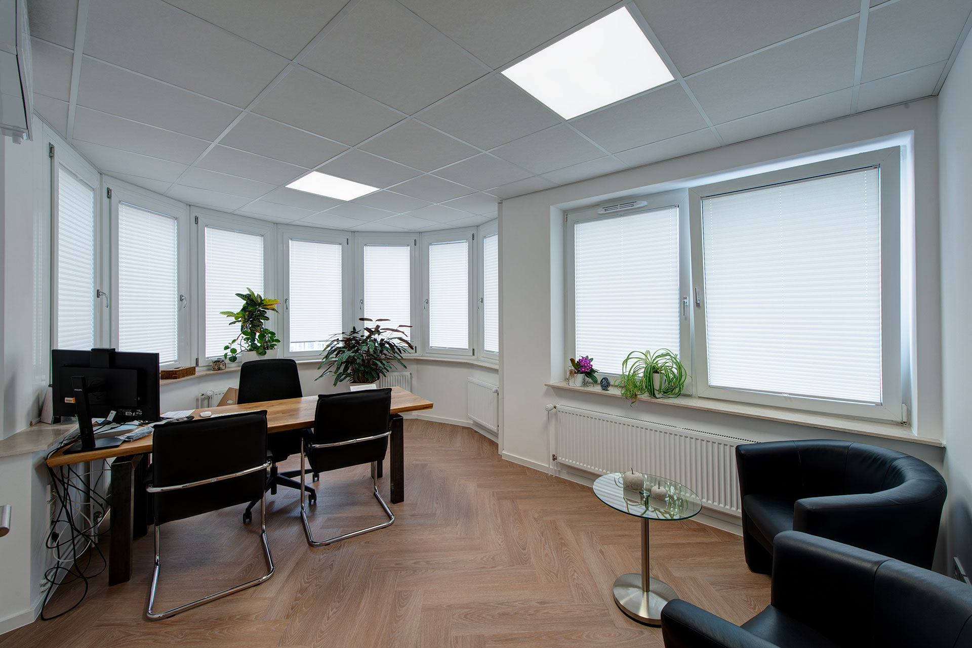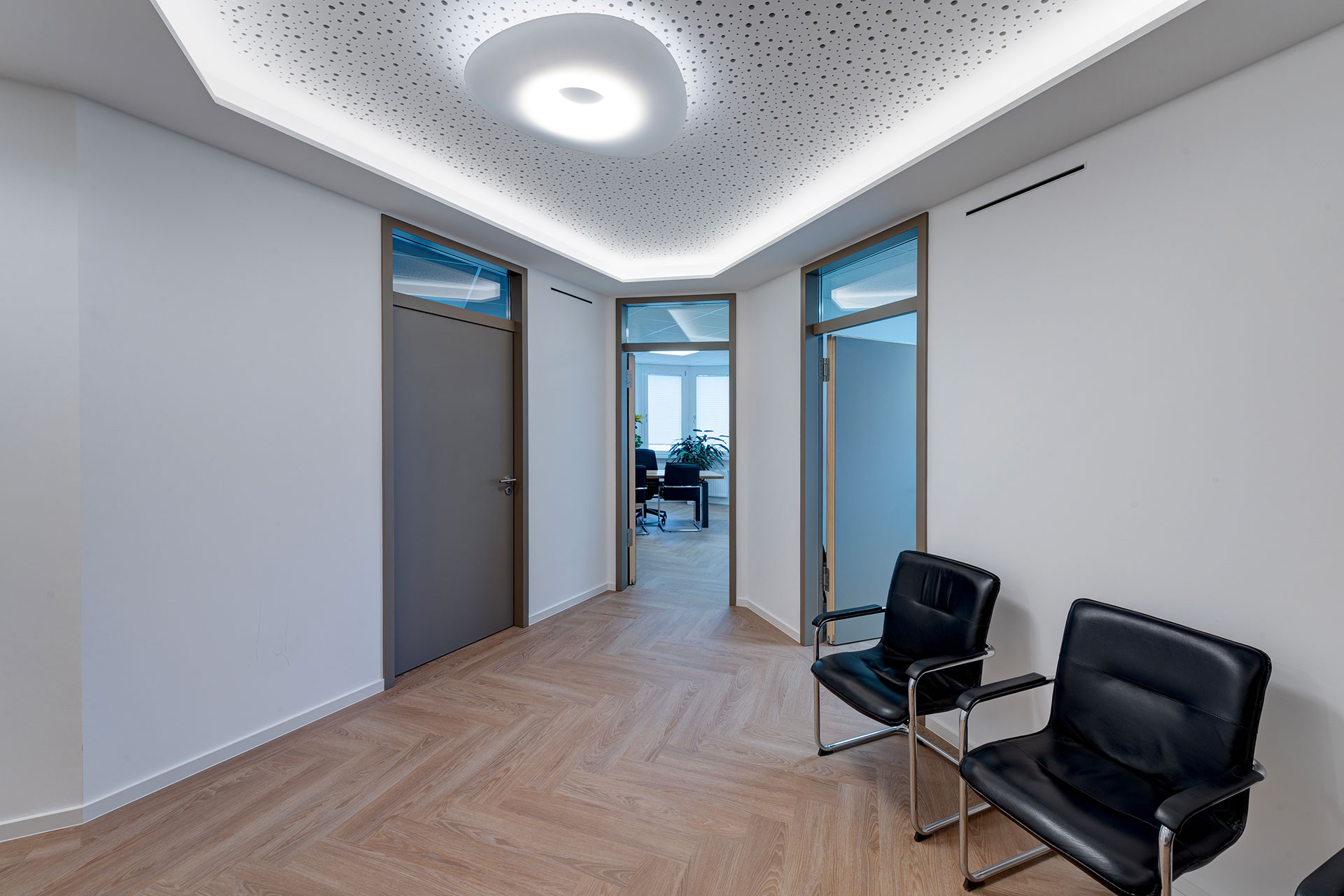 « Zurück zur Übersicht MODERNE ARBEITSWELTEN NEU DEFINIERT – UMFANGREICHE SANIERUNG FÜR EINE INSPIRIERENDE UMGEBUNG Projektdetails Projekt: Certis Belchim, Hannover Bauherr/Eigentümer: Aroundtown Fertigstellung: April bis Juni 2024 Architektur: teicher.architektur Möbel/Planung: tg contor, Isernhagen Trockenbau: Germerott Innenausbau GmbH & Co. KG Fotos: Frank Aussieker Fotografie, Hannover Leistungen/Herausforderungen Die Vision, eine moderne und funktionale Bürolandschaft zu schaffen, setzte die GermerottInnenausbau GmbH in diesem Projekt auf beeindruckende Weise um. Auf einer Fläche von rund 500 m² entstand eine Arbeitsumgebung, die Ästhetik, Effizienz und Komfort miteinander vereint und dabei höchste Ansprüche an Qualität und Nachhaltigkeit erfüllt. Ein besonderes Augenmerk wurde auf die Wand- und Deckengestaltung gelegt. Um eine einladende und inspirierende Atmosphäre zu schaffen, wurden die Flächen mit schadstoffarmen, umweltfreundlichen Farben versehen. Akzentuierte Bereiche setzen stilvolle Highlights und verleihen dem Raum Struktur und Tiefe. Besonders die naturnahen Fototapeten unterstreichen die Verbindung zur Umwelt und reflektieren das Engagement des Unternehmens für nachhaltige Landwirtschaft. Alle Böden wurden vollständige erneuert. Nach der sorgfältigen Vorbereitung durch Fräsen und Spachteln wurden in den Büros und Besprechungsräumen schalldämpfende Teppichböden verlegt, die für eine ruhige Arbeitsumgebung sorgen. In den Gemeinschafts- und Durchgangsbereichen kam ein robuster Vinylboden zum Einsatz, der nicht nur langlebig ist, sondern auch die moderne Optik unterstreicht. Die technische Ausstattung wurde ebenfalls umfassend modernisiert. Neue Steckdosen, Lichtschalter und LAN-Anschlüsse wurden fachgerecht installiert, um den wachsenden Anforderungen an Flexibilität und Funktionalität gerecht zu werden. Eine neue Unterverteilung sichert eine stabile und zukunftsfähige Energieversorgung. Der Ausbau der Sanitärbereiche um fünf neue Einheiten bringt einen deutlichen Mehrwert für Komfort und Hygiene. Die sorgfältige Errichtung von Trockenbauwänden ermöglichte eine kluge Raumaufteilung, die die vorhandene Fläche optimal nutzt. Modernste, wassersparende Armaturen reflektieren den Fokus auf Nachhaltigkeit und Effizienz. Die neue Teeküche wurde als kommunikativer Treffpunkt gestaltet und ausgestattet. Hochwertige Materialien, energieeffiziente Geräte und eine durchdachte Ausstattung bieten den Mitarbeitenden einen Raum, der nicht nur funktional, sondern auch optisch ansprechend ist. Hier lässt sich die Pause in angenehmer Atmosphäre verbringen. Zusätzlich sorgt die moderne LED-Beleuchtung für eine gleichmäßige, flimmerfreie Ausleuchtung, die die Augenbelastung reduziert und somit die Konzentration und Produktivität der Mitarbeitenden unterstützt. Das neu integriertes Belüftungssystem verbessert kontinuierlich die Luftqualität und sorgt für ein angenehmes Raumklima und damit das allgemeine Wohlbefinden und die Leistungsfähigkeit der Mitarbeitenden. Damit tragen diese Elemente zur Schaffung eines produktiven und motivierenden Arbeitsumfelds bei. Das Projekt wurde trotz des umfangreichen Arbeitsumfangs innerhalb der geplanten Bauzeit von zwei Monaten erfolgreich abgeschlossen. Die modernisierte Bürofläche beeindruckt mit einem durchdachten, hochwertigen Design, das sowohl funktional als auch einladend ist. Die rechtzeitige Fertigstellung und Einhaltung des Budgets sorgten für eine hohe Zufriedenheit beim Auftraggeber. Dank der vorausschauenden Planung und exakten Umsetzung ist die Bürofläche bestens auf künftige Herausforderungen vorbereitet und bietet den Mitarbeitenden ein optimales Arbeitsumfeld, das Effizienz und Wohlbefinden fördert. Artikel als PDF herunterladen