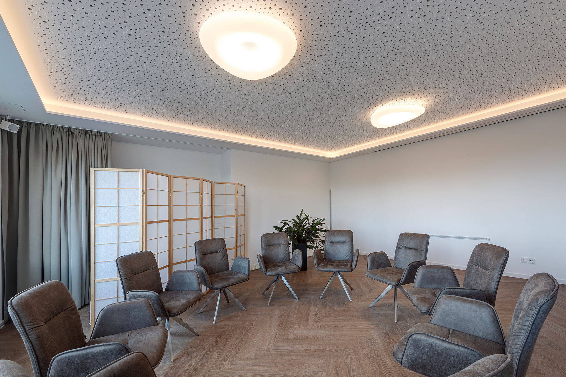 PSYCHIATRISCHES ZENTRUM, HANNOVER RAUM FÜR RUHE UND PRÄZISION ATMOSPHÄRE, DIE STÄRKT – GESTALTUNG, DIE WIRKT. BAUTAFELFertigstellung: September 2025Projekt:Modernisierung Psychiatrisches Zentrum, HannoverBauherr/Eigentümer:Psychiatrisches Zentrum, Stefan BeerboomArchitektur:btp Architekten, HannoverTrockenbau:Germerott Innenausbau GmbH & Co. KGFotos:Ralf Mohr Photographie Projektbeschreibung In zwei Bauabschnitten verwandelte Germerott eine ehemalige Büroetage in ein modernes psychiatrisches Zentrum. Ziel war eine funktionale, sichere und zugleich angenehm ruhige Umgebung, die höchsten Anforderungen an Akustik, Komfort und Gestaltung gerecht wird.Der erste Bauabschnitt (ca. 200 m²) umfasste die vollständige Entkernung und den Neuaufbau mit sieben Patientenzimmern, Empfangsbereich, modernen Sanitärräumen und Technikzonen. Hochwertige Schallschutzelemente, Akustikdecken mit Lichtvouten und präzise ausgeführte Details schaffen eine Atmosphäre der Ruhe und Wertigkeit.Auch komplexe Eingriffe – vom Schließen eines Aufzugsschachts bis zu Brandschutz- und Estricharbeiten – wurden mit höchster Präzision umgesetzt. Ein besonderes Detail ist die integrierte Leinwand im GK-Fries – ein Beispiel für handwerkliche Genauigkeit und durchdachtes Design.Im zweiten Bauabschnitt (ca. 100 m²) wurde das Konzept konsequent fortgeführt: Neue Raumabtrennungen, WC-Einheiten und Deckenlösungen verbinden Funktionalität und Ästhetik. Linien, Materialien und Lichtführung greifen harmonisch ineinander und schaffen ein Gesamtbild von Klarheit, Ruhe und Qualität.Dezente Verkleidungen lassen technische Installationen nahezu verschwinden – das Ergebnis ist eine moderne Umgebung, in der Architektur und Handwerk perfekt zusammenspielen. PDF DOWNLOAD DES PROJEKTS Ziel der Umbaumaßnahme war eine angenehm ruhige Umgebung, die höchsten Anforderungen an Akustik, Komfort und Gestaltung gerecht wird. Die sanfte, indirekte Beleuchtung verleiht den Räumen ihre ruhige, fast schwebende Wirkung. Ich möchte noch mehr Referenzen aus dem Bereich Handel & Dienstleistung sehen. Ich habe ein Projekt, dass ich gerne mit Germerott umsetzen möchte. Hier gleich Anfrage starten Alle Referenzprojekte entdecken « Zurück zur Übersicht Projektdetails Leistungen / Herausforderungen